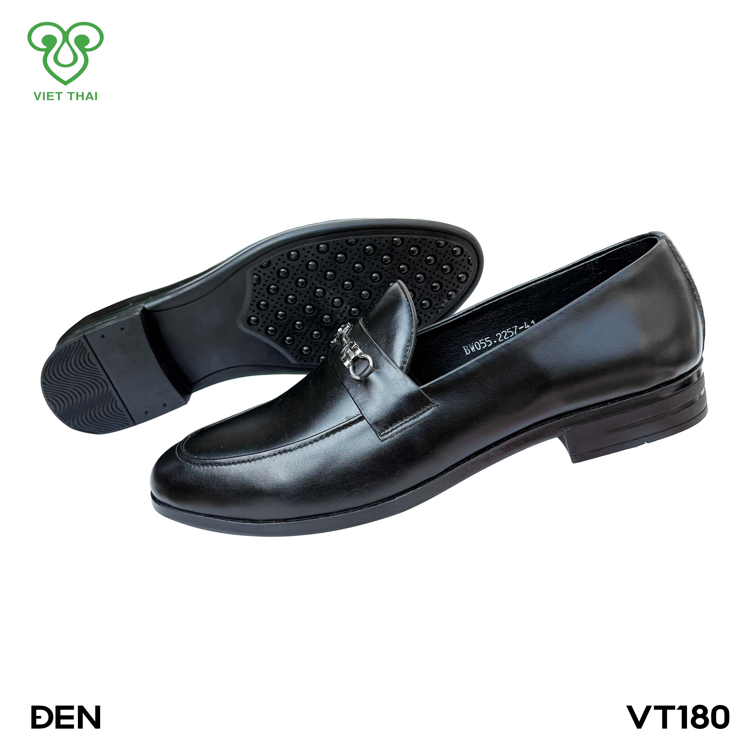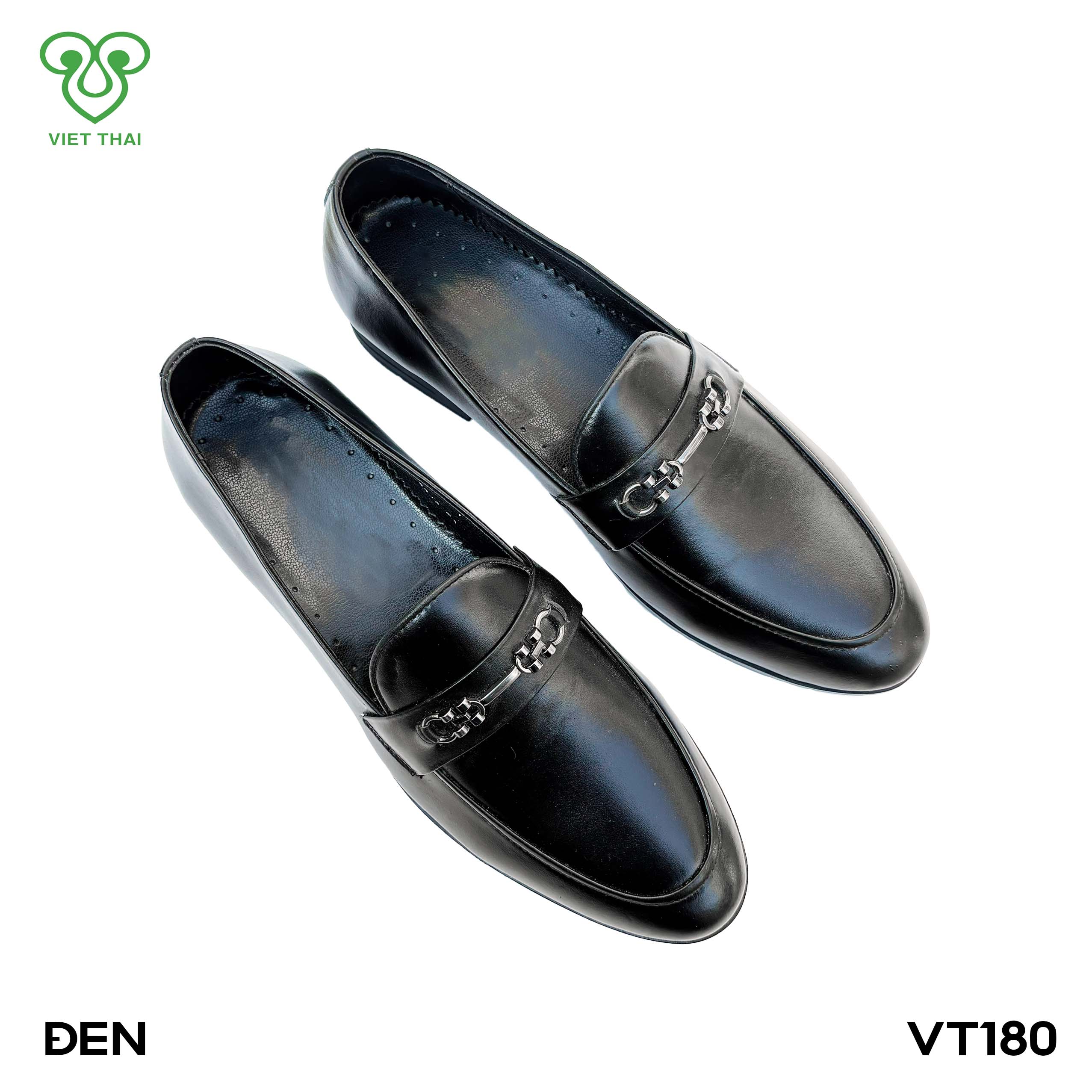 ![[icon name="star" prefix="fas"] Giày công sở thiết kế thanh lịch VT180 Chất liệu da bò cao cấp, da thật 100% Form giày ôm chân, thiết kế hiện đại, thoáng mát, thoải mái Đường chỉ may tỉ mỉ, tinh tế Đế chống trơn trượt, thời trang Màu: Đen [icon name="star" prefix="fas"] Thiết kế chi tiết Nam tính và hiện đại là điều bạn có thể dễ dàng nhận thấy trong thiết kế này. Thiết kế đơn giản, lịch lãm, dễ kết hợp trang phục Chất liệu da cao cấp, mềm mại cùng thiết kế đế giày bằng chất liệu cao su mang lại cảm giác thoải mái khi sử dụng. [icon name="star" prefix="fas"] Chính sách sản phẩm Sản xuất và độc quyền tại Giày Việt Thái Bảo hành 12 tháng Giao hàng toàn quốc, thanh toán sau khi nhận hàng Đổi trả hàng trong vòng 15 ngày](https://giayvietthai.com/wp-content/uploads/2025/11/khung-anh-bia-25.jpg)